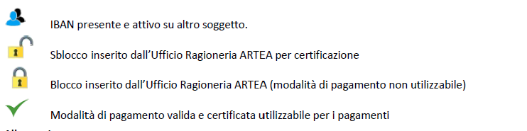 11) Nei casi in cui si rende necessario, l’Ufficio Ragioneria di Artea potrà bloccare una modalità di pagamento. In tale caso la stessa, non potrà essere riattivata e, di conseguenza, certificata.